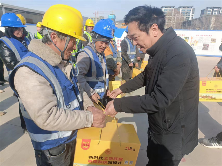李主席一行深入到施工現(xiàn)場,詳細了解工期進程,重點檢查春節(jié)穩(wěn)定、農(nóng)民工保障、安全生產(chǎn)等方面情況,同時為奮戰(zhàn)在項目一線的200余名農(nóng)民工發(fā)放農(nóng)產(chǎn)品等節(jié)日禮包,送去了工會組織的溫暖。