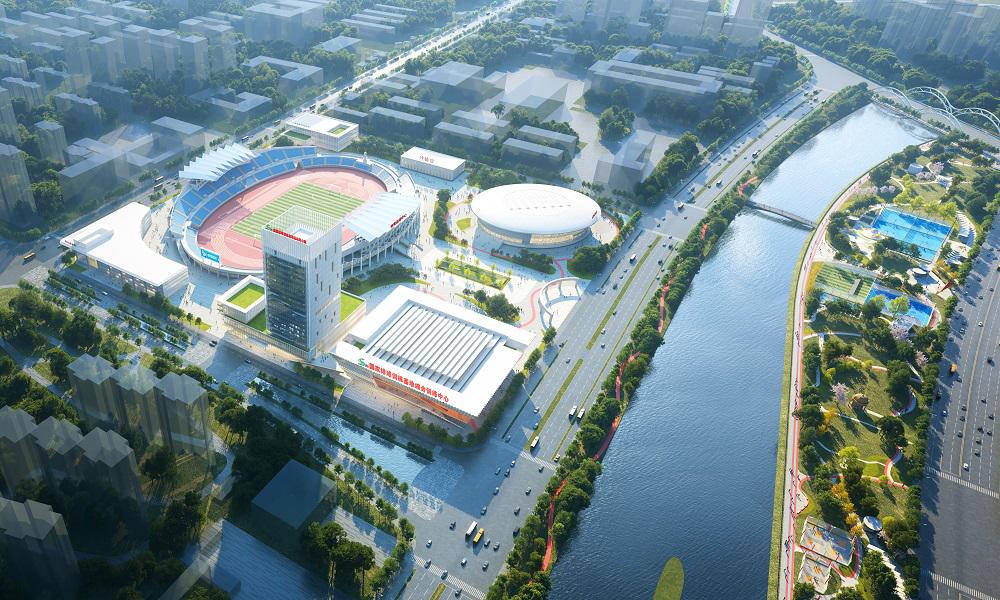 項目以“中軸對稱、方圓相濟”為理念,與原有體育建筑體現(xiàn)“剛?cè)嵯酀?,天圓地方"傳統(tǒng)哲學(xué)觀,它與體育運動中心東側(cè)建設(shè)的商州沙排公園呼應(yīng),組成“城市活力綠心”,形成賽、訓(xùn)、住等閉環(huán)功能格局,為不同年齡段市民和游客提供休閑娛樂場所。